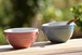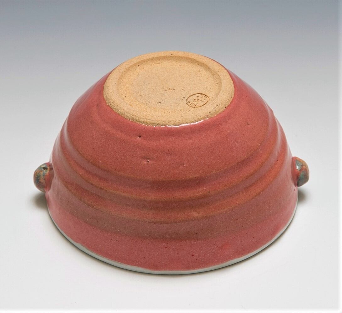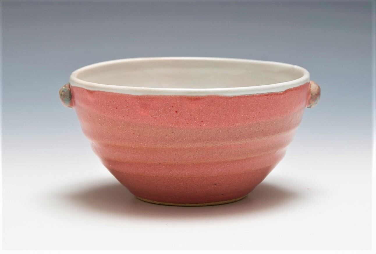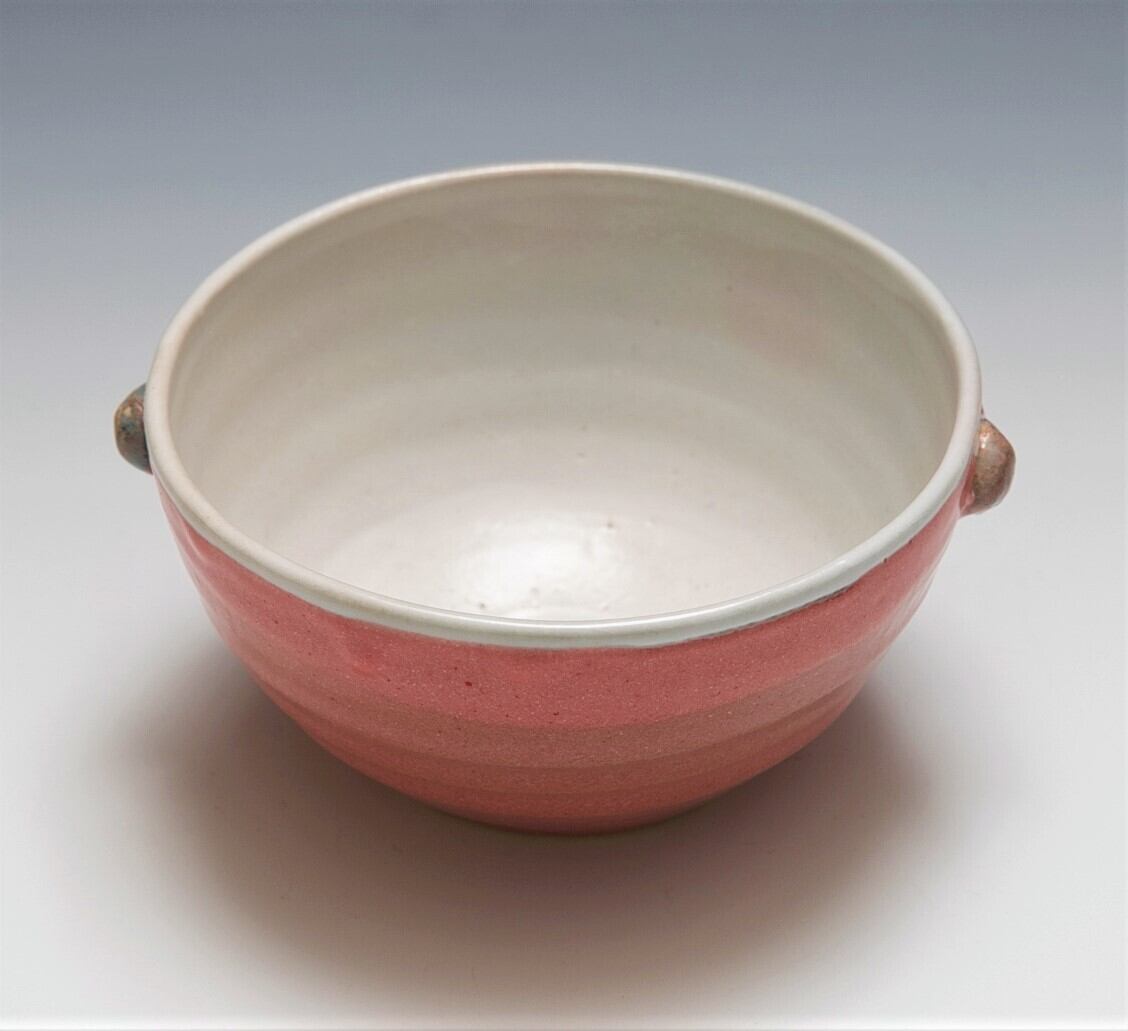 内側に藁白釉、外側はpink色の釉で掛け分けてます。両サイドにmarble模様のポチが付いています。小さな子供さんの食器にもどうぞ。